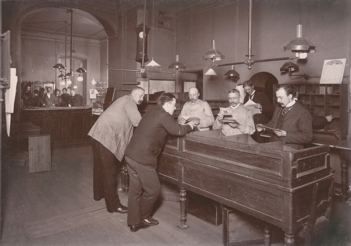 Posthuset Rödbodtorget, Stockholm 1903. Postkontoret
