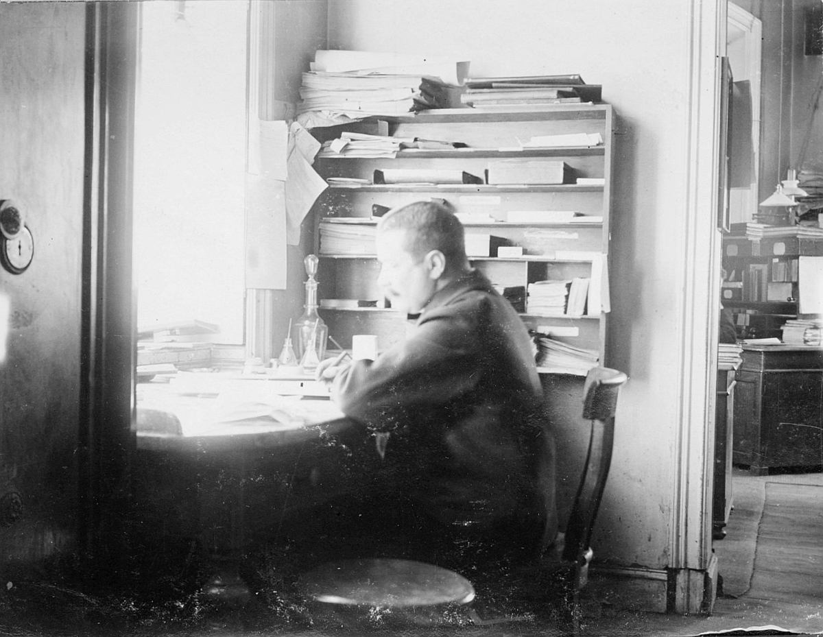 Postexpeditör C.J.A. Pettersson vid Centralpostkontoret i Stockholm. Ankommande avdelningen vid Rödbodtorget.