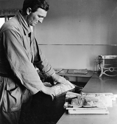 Lantbrevbärare, motorcykelåkande Holger Österberg på ön Möja