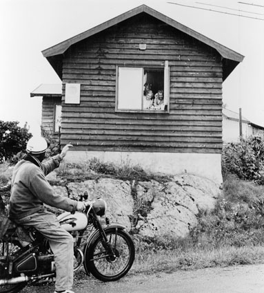 Lantbrevbärare, motorcykelåkande Holger Österberg på ön Möja