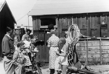 Foto i augusti 1959. Lantbrevbärare Wendelsson sorterar post i