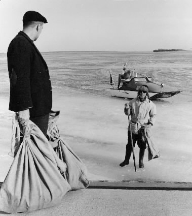 Nordstedt, försedd med ispik, på väg mot bryggan.