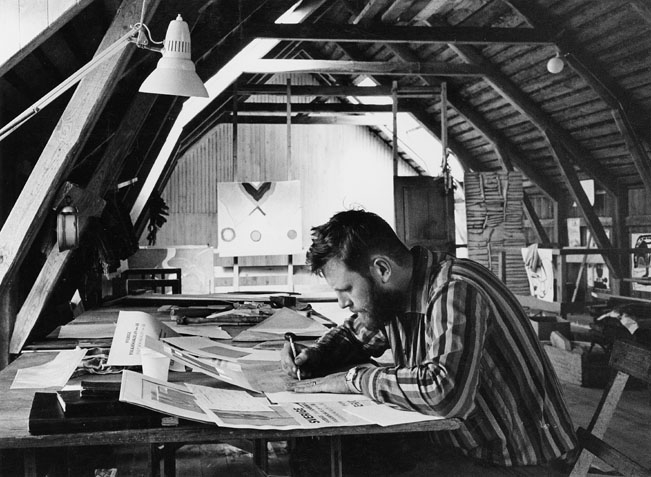 6/7 1967. Konstnären i sin sommarateljé i Båtels-Näs på Gotland.