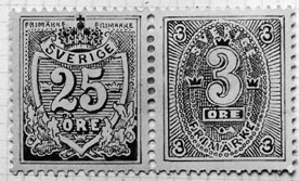 Frimärksförlaga till frimärket Ringtyp 1872 - . Valör 25 öre, resp. 3 öre.