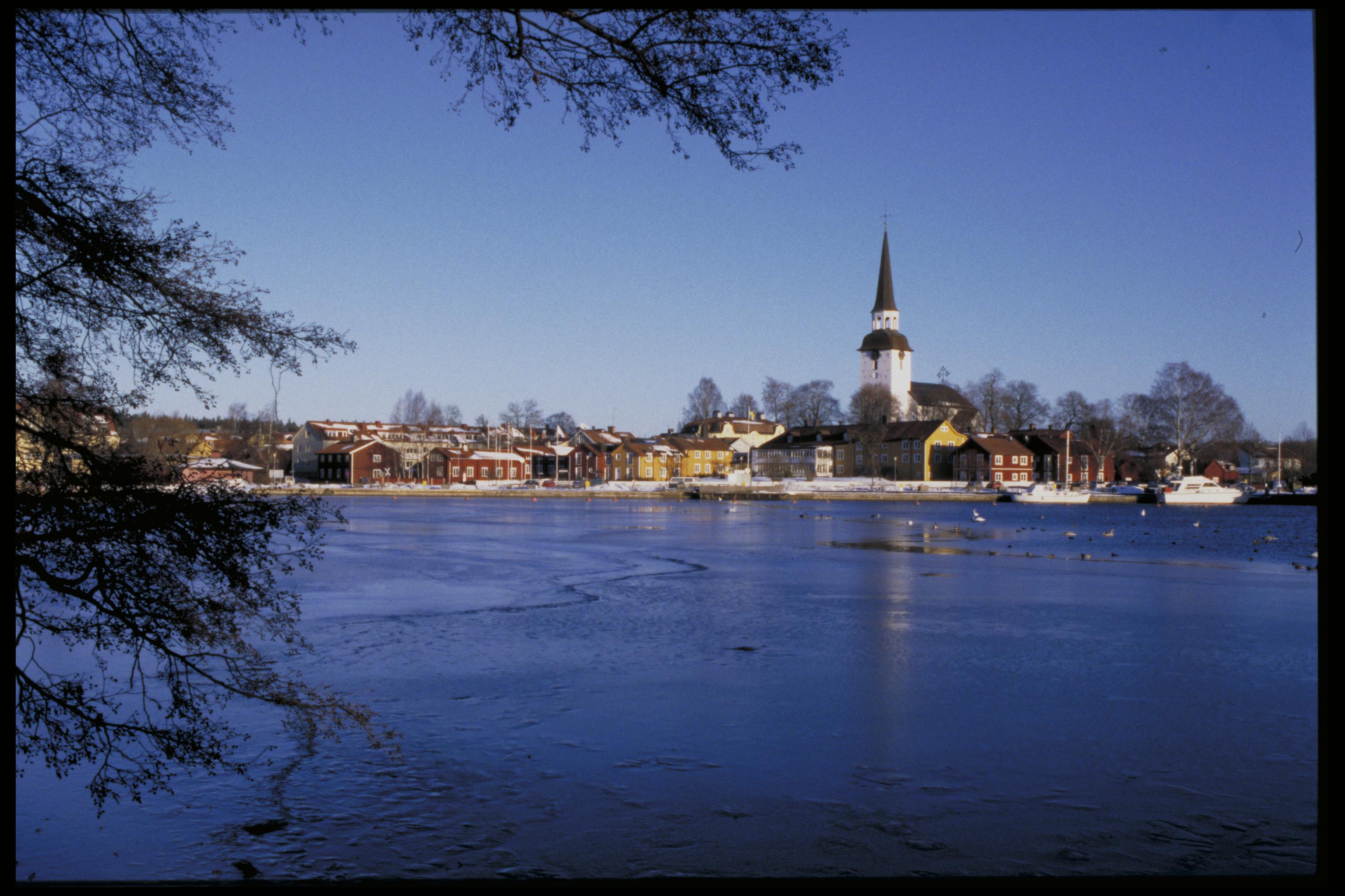 Hamnen med kyrkan i bakgrunden, från slottet.