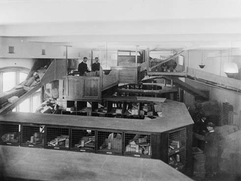 vänster). En glidbana till utrikes paketexpeditionen synlig längst