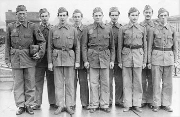 Längst t.v. ledaren förste postassistent K.A.R. Lundin. Främre