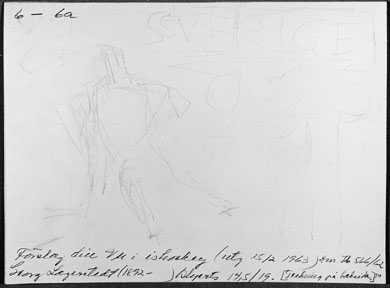 Förslagsteckningar utförda av konstnären Georg Lagerstedt (1892 - ). Förslag 6a. Blyertsteckning. (Förslag 6, blyertsteckning, på bladets framsida).