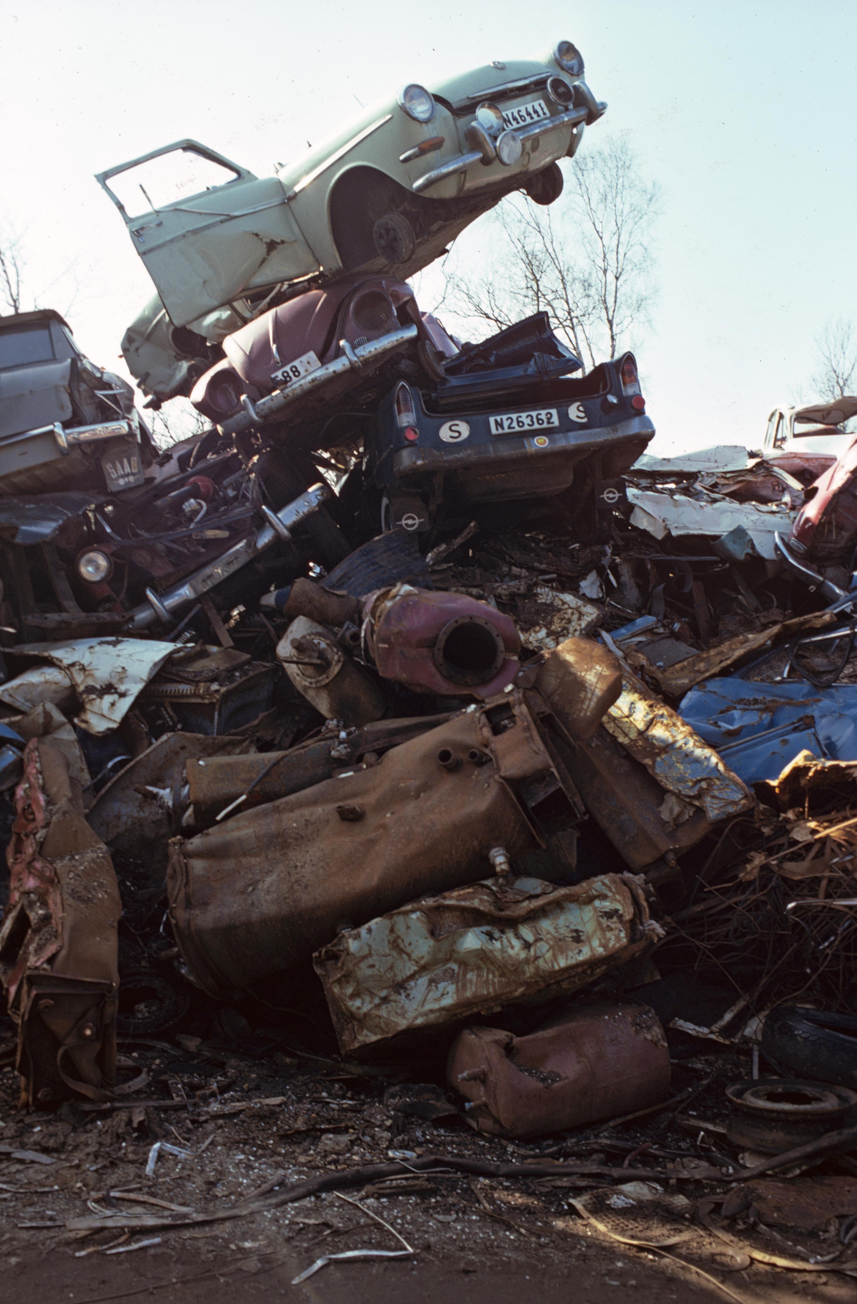 Bilskrot. Bilden troligen från mitten av 1970-talet.