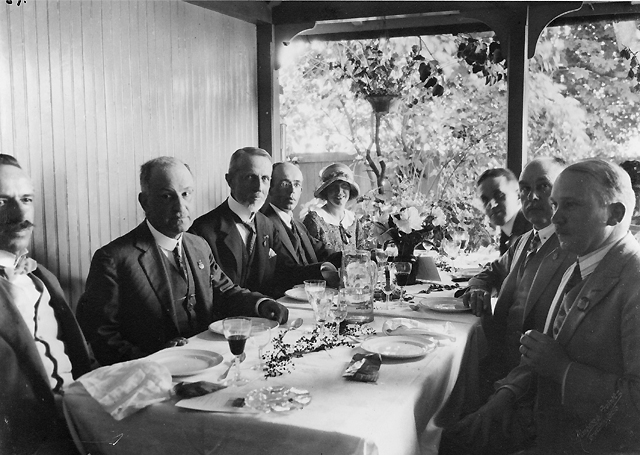Lunch i Strängnäs. 4:e man från vänster: förste aktuarie Yngve