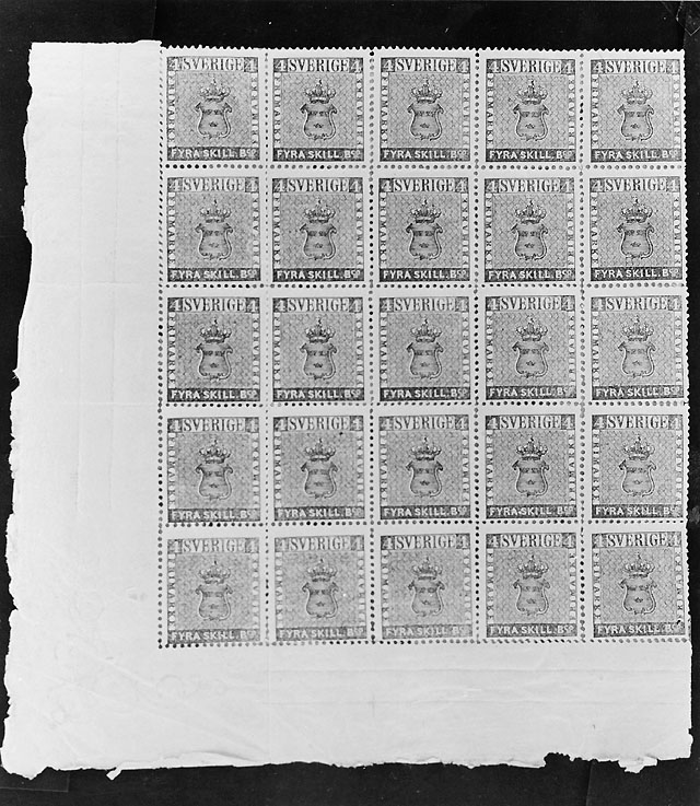 Titel: 1/4 ark (25-block) av 4 skilling banco.