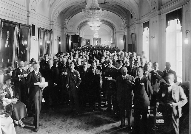 Thé i Riksdagshusets korridorer efter automobilutfärden den 5 juli.