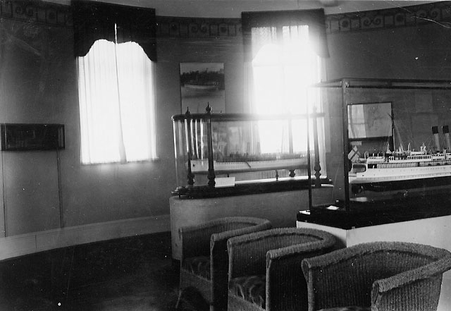 Närmast fönstret: modell av fartyget Prins Gustaf Adolf och till
