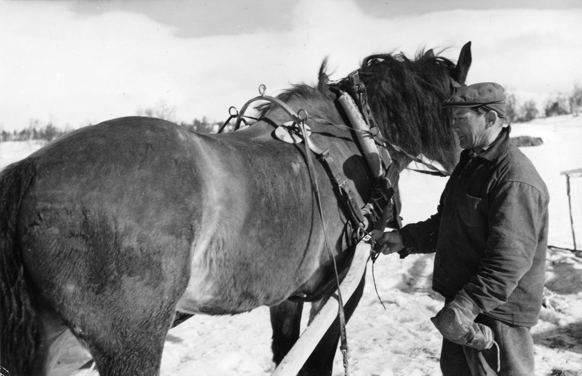 Lantbrevbärare Per Andersson på linjen Långudden-Västerfjäll (45,5 km) med den äldre av sina två hästar.