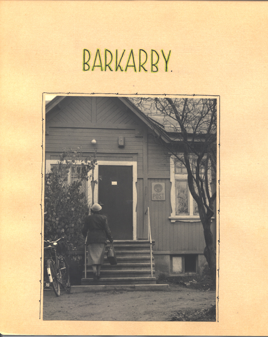 Barkarby poststation exteriör med postskylt, huset är av trä