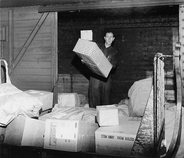 Titel: Det särskilt iordninggjorda paketet lastas in i godsfinka.