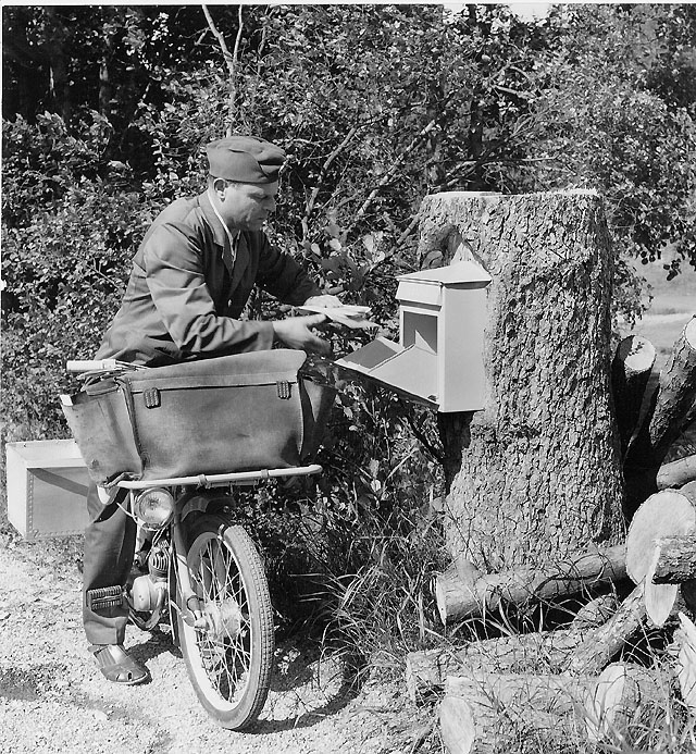 Postiljon Arnold Carlsson (Post-Kalle) tömmer brevlådan vid