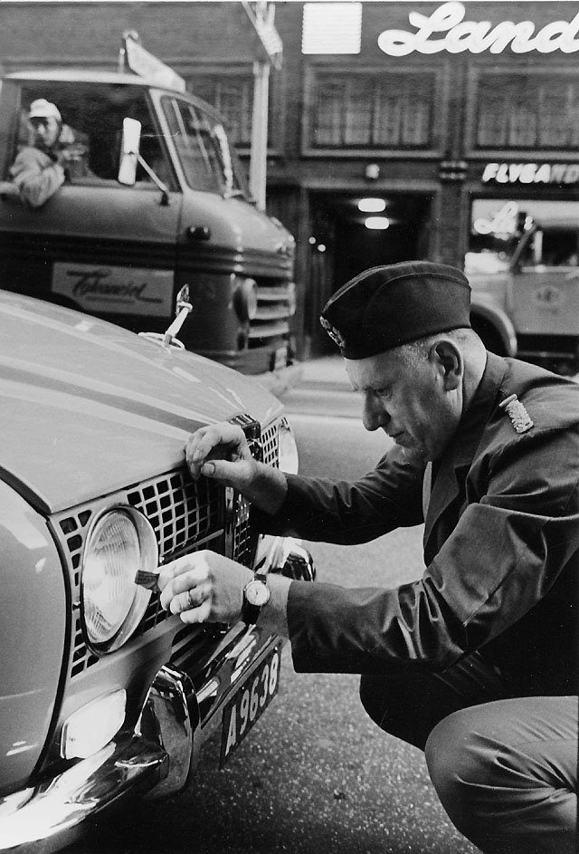 Transportmästare Frensch Jonsson, Sth D, tar bort tejpen från