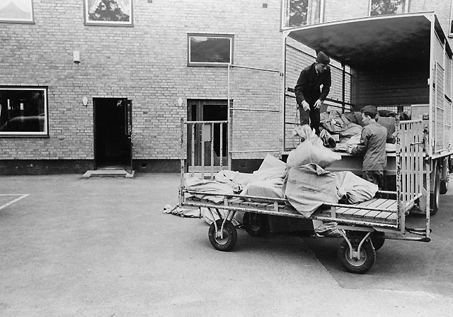 till olika platset inom brevområdet. Posten från Alvesta lossas här vid postexpeditionen i Vislanda.