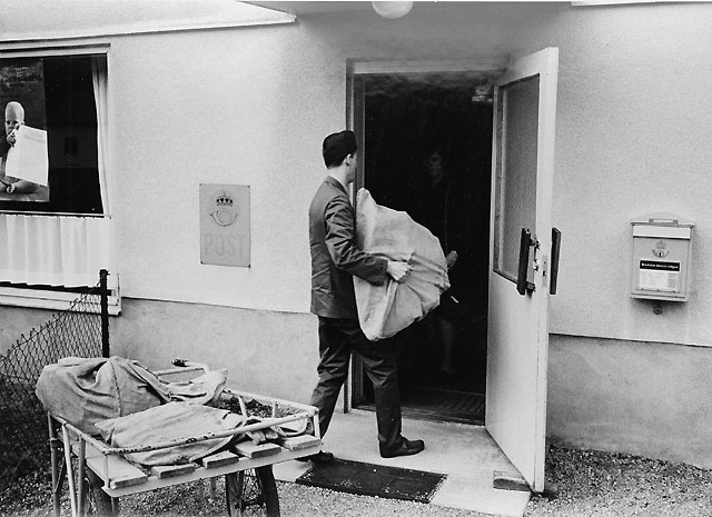 Fpj John Stjärna, som transporterat posten från Alvesta, bär in