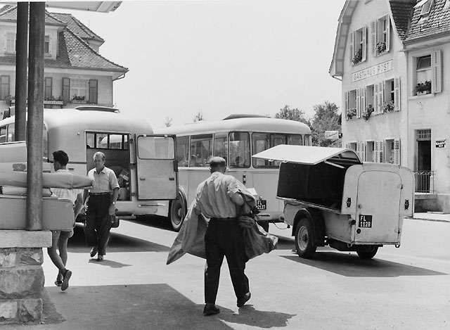 Posten till Vaduz lastas in i bussen t.v. och t.h. till