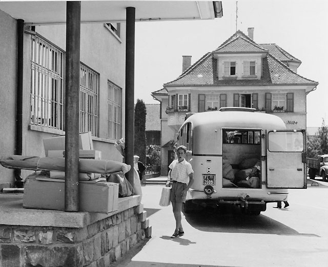 Post till Vaduz inlastas i en postbuss på linjen Buchs (Schweiz)-