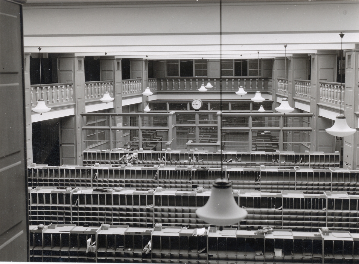 omkring 1925. Närmast: Brevbärarsalen. Bortom: