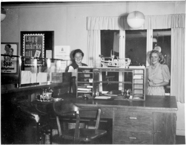 Ramsele posstation, interiör, till vänster: Frida Henriksson. Solleftå postområde.