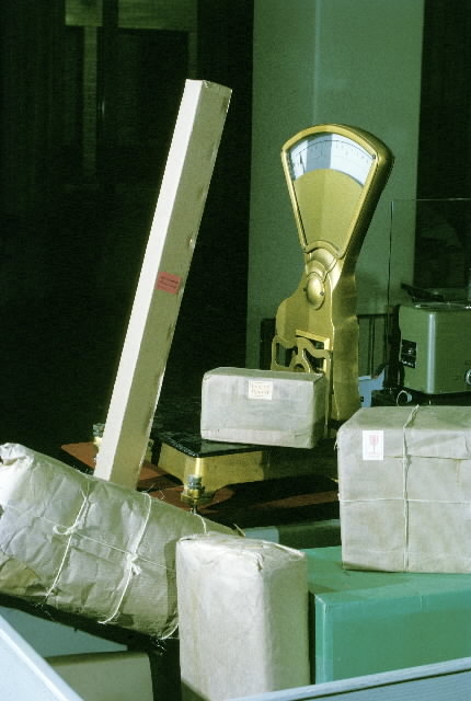 Seriebild M 30. Postkontoret Solna 1. Paketvåg med olika typer av