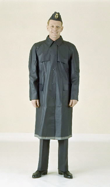 tilldelades den uniformspliktiga tjänstemannen vid behov. Regnrocken