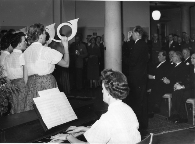 Högtidlighetens första programpunkt: Sång av "Postflickorna",