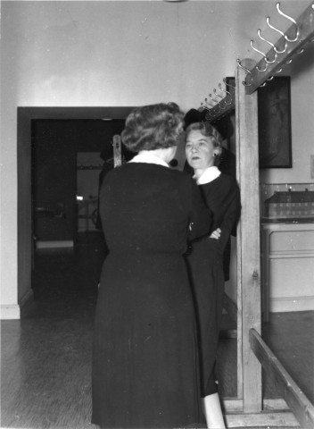 utställningssalarna. Två medlemmar av intendent Arvid Swärds trupp av
