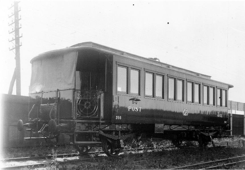 Fotografi föreställande Järnvägspostvagn Litt CD nr 208 efter dess ombyggnad. Vid Östra Centralbanan, tillverkad 1901.