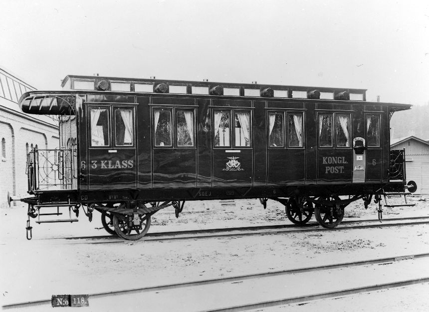 Fotografi föreställande postvagn Litt CD nr 6 på sträckan Sölvesborg-Olofström. Tillverkad 1900.