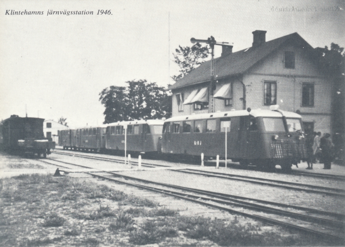 Vykort föreställande Klintehamns järnvägstation där Posten var inkvarterad mellan åren 1898-1923.