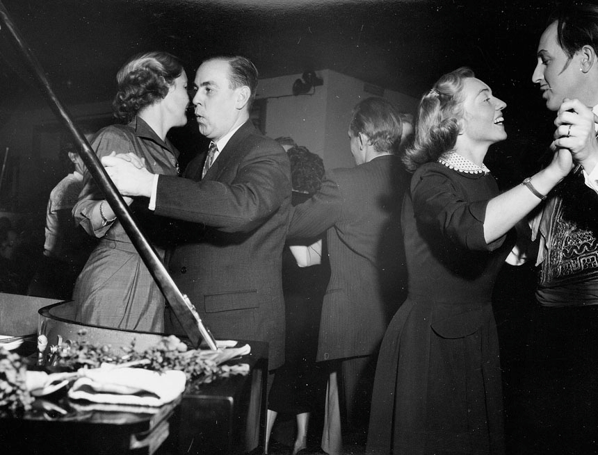 Värdshuset "Den gyldene flygeln". Cabaret med sång och dans i Postgirots lunchrum Klara Norra Kyrkogata, Stockholm, den 28 november 1953.