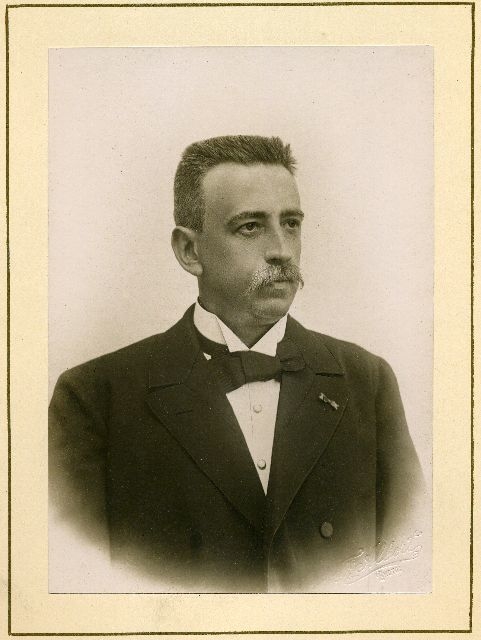 Porträtt av en deltagare i världspostkongressen i Washington, USA, år 1897.