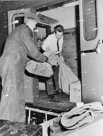 Post till pkp 307 lastas in i Bollnäs. Ture Lindgren i det
