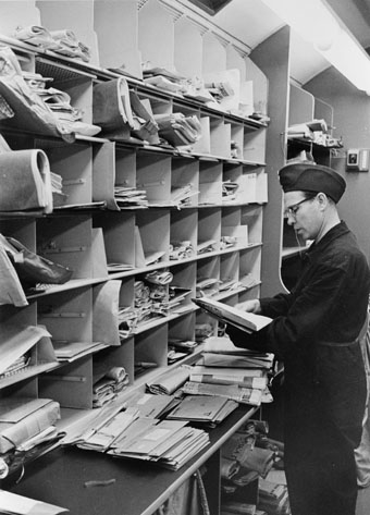 Pkp 307. Gösta Ryberg sorterar korsband.