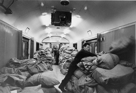 är aerotempern i taket i resgodsavdelningen, där postsäckarna stuvas