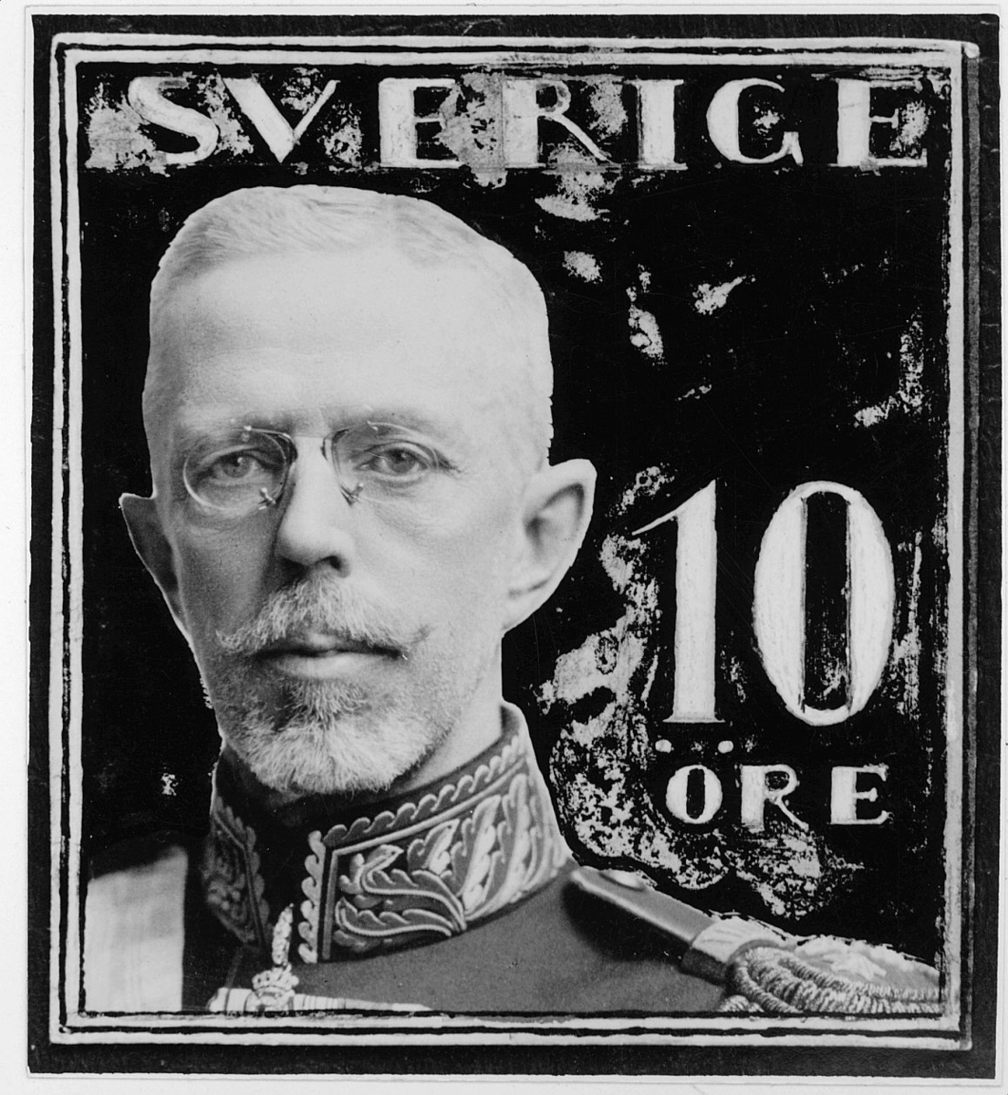 Originalteckning till frimärket "Gustav V en face" 1920 av Axel Törneman.
