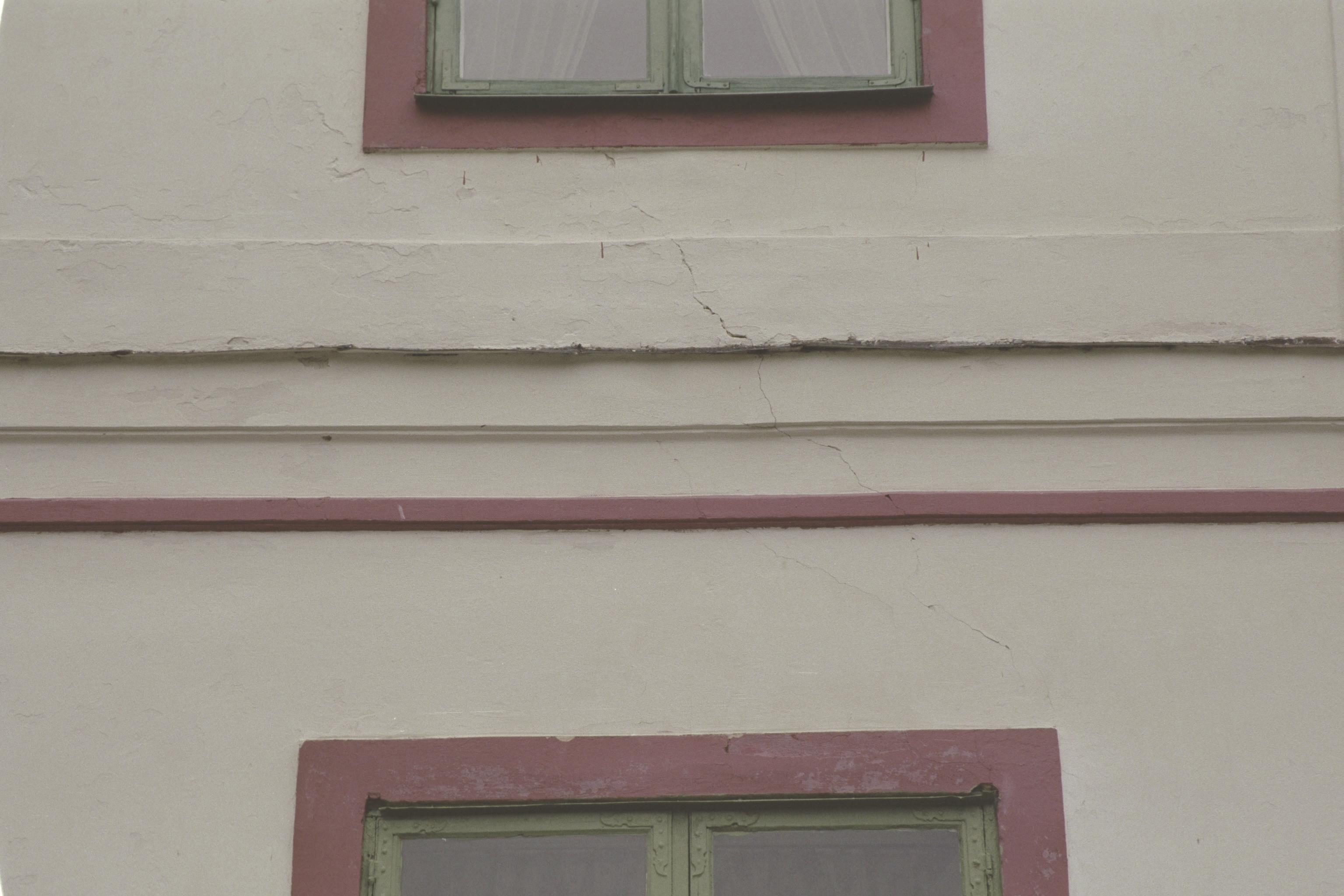 Huvudbyggnadens östra fasad, våningsband vid andra axeln från höger.