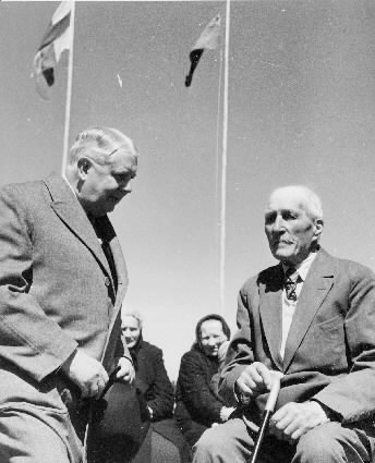 Svenske konsuln t.v. i samtal med postroteman Johan Sjöblom. I