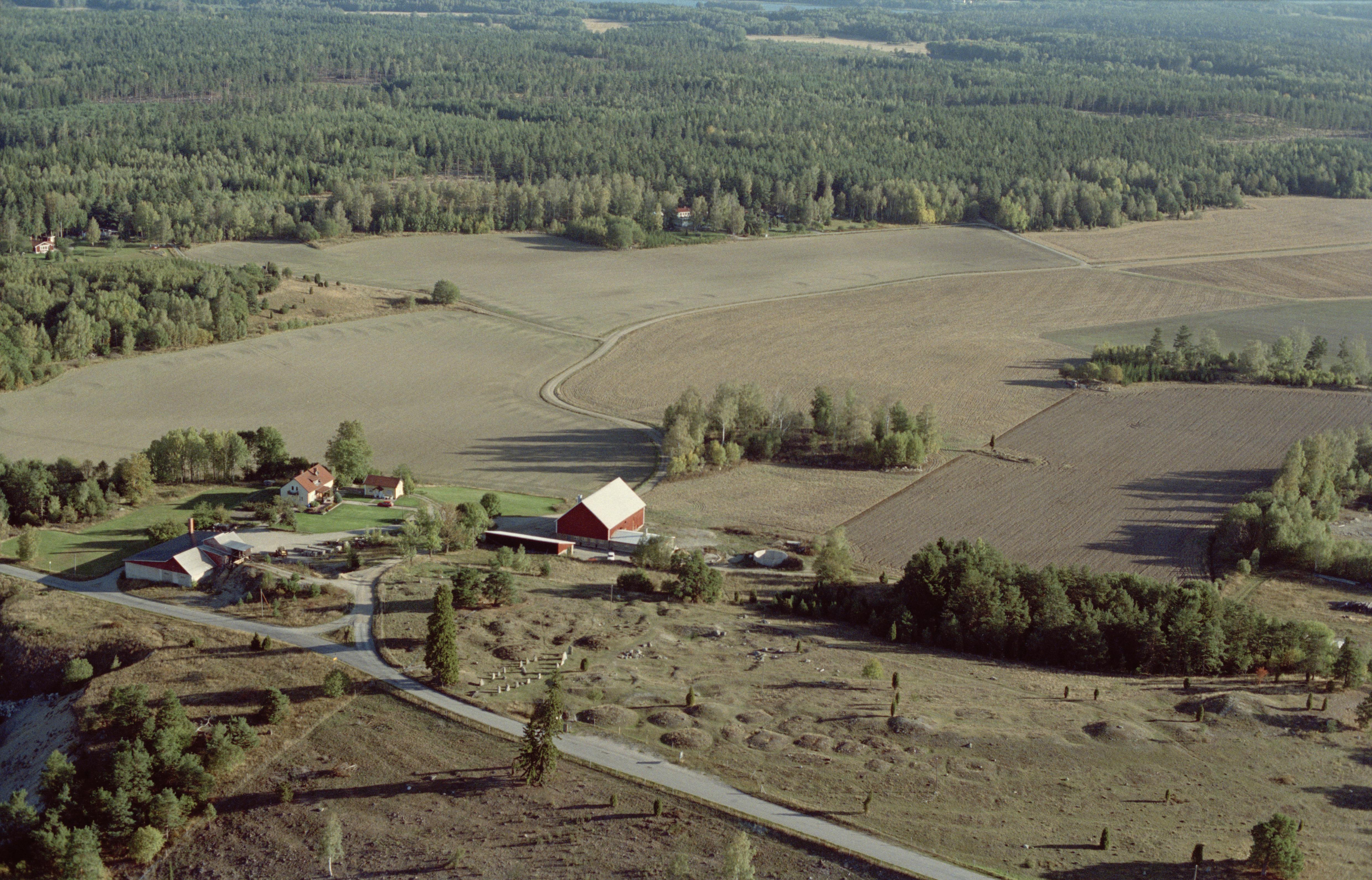 Åsa gravfält RAÄnr Ytterselö 123:1 med bl.a. skeppssättning, runristning RAÄnr Ytterselö 123:2 och hällristning RAÄnr Ytterselö 304. Bilden är tagen mot (väderstreck): NO