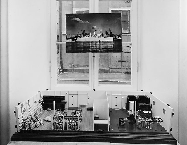 I fönstret en bild av Gripsholm i Göteborgs hamn.