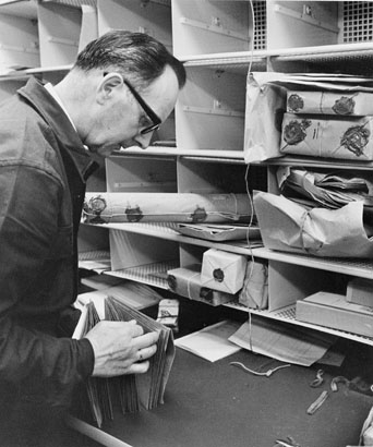 Pkp 310. Kupémästare Sigurd Kassberg räknar reken.