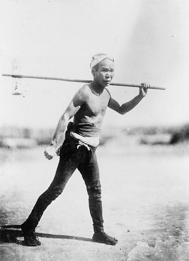 Postlöparen bär brevposten i änden på en stång och i ogästvänliga