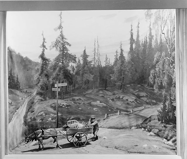 Modell av en postförare på vägen mellan Piteå och Älvsbyn. Början av 1900-talet.