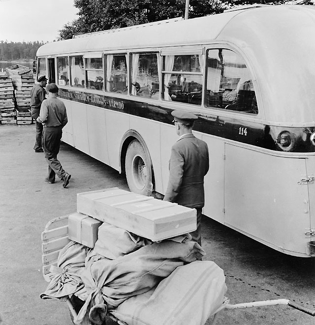 Björknäs-Värmdöbussen har anlänt till Stavsnäs med Möjas post.