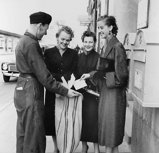 Chaufför Nils Gunnar Jonsson tömmer brevlådorna över hela staden,